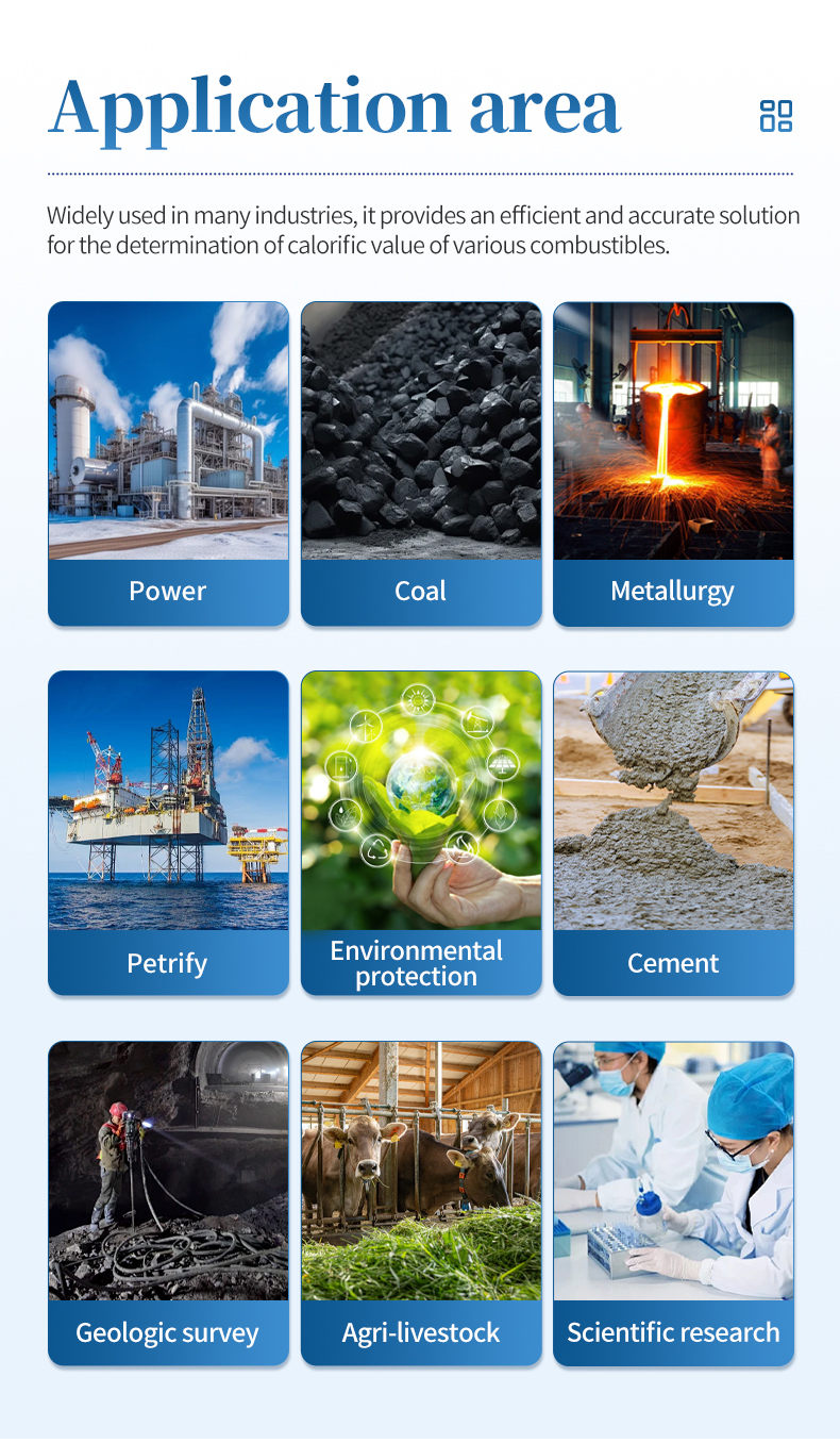 Suitable for enterprises, colleges, research departments, and military units engaged in the production, research, and use of combustible materials to determine the calorific value of coal, coke, chemical industry, grain, wood, feed, and the explosive calorific value of gunpowder.