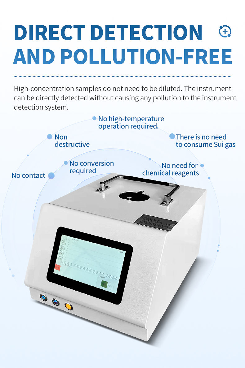 2. In sample analysis, there is no contact, no damage, no need for conversion, no need for high-temperature operation, no need for chemical reagents, and no need to consume inert gases. High concentration samples do not require dilution and can be directly detected by the instrument without causing any pollution to the instrument detection system.