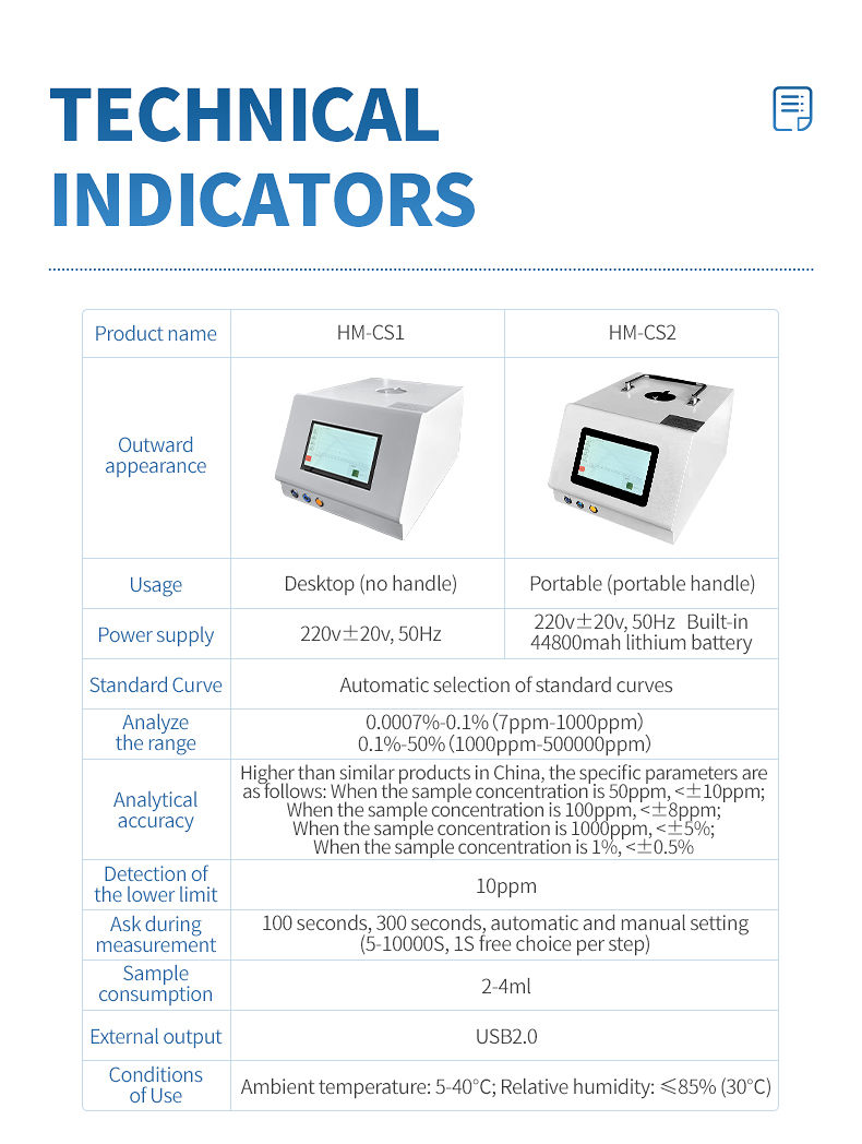 Analysis accuracy: higher than similar domestic products, with specific parameters as follows: