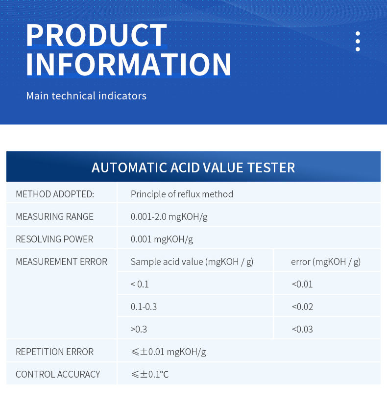 5. Repetitive error: ≤± 0.01 mgKOH/g