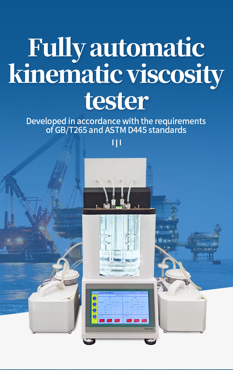 The fully automatic kinematic viscosity tester is developed in accordance with the requirements of GB/T265 and ASTM D445 standards, and is used to measure the kinematic viscosity of liquids and petroleum products. The structural design is exquisite, beautiful, practical, and comfortable to operate. One click quick constant temperature, oil sample suction, viscosity detection, viscosity value calculation, printing, viscosity tube cleaning, drying viscosity tube, no manual operation required, the instrument is automatically completed, and two samples can be tested at the same time, improving work efficiency; Widely used in pharmacopoeia, petroleum, chemical, scientific research, metrology, commodity inspection, power and other departments.