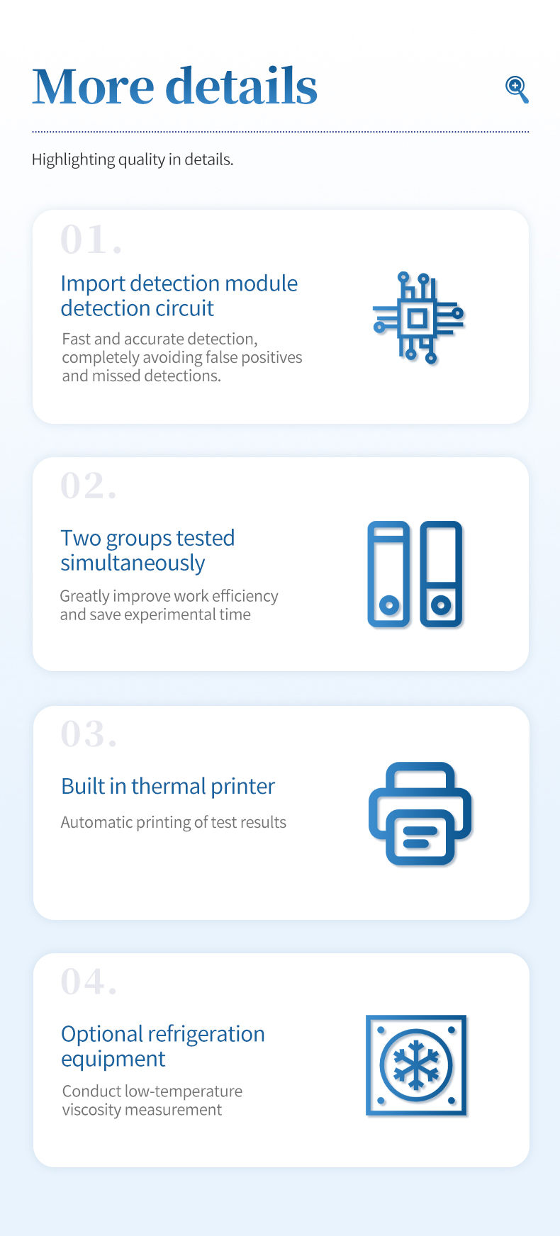 7. Two sets of viscosity tubes can be tested simultaneously, greatly improving work efficiency and saving experimental time.