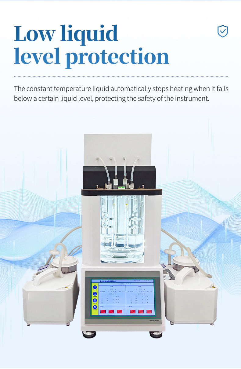 9. Equipped with low liquid level protection function, the constant temperature liquid automatically stops heating when it drops below a certain level, protecting the safety of the instrument.